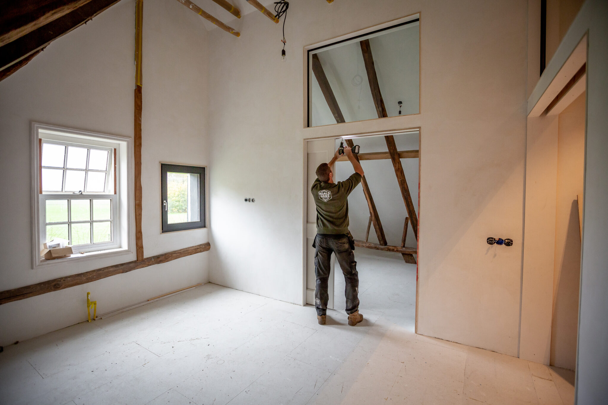 Uw pand wordt verbouwd door vakmensen met ervaring en specialistische kennis. Het timmerwerk voeren we uit in onze eigen, ambachtelijke werkplaats. Voor de overige werkzaamheden werken we samen met gecertificeerde en betrouwbare bouwpartners. Allemaal werken we met dezelfde passie aan hetzelfde doel: uw woonwensen realiseren tot uw droomwoning helemaal af is.